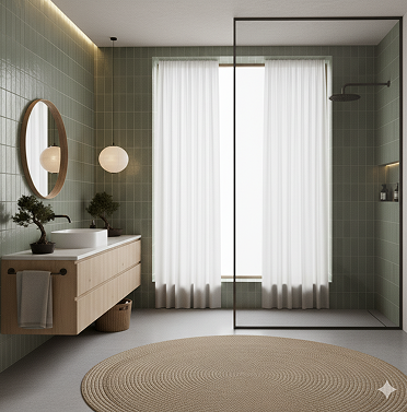 - Clean tiles, grout, and countertops